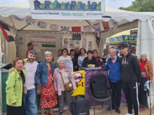 Estuvo con la Asociación Valle Inclán-Prosperidad la Escuela Popular, que además de colaborar en los turnos normales, la mañana del sábado nos ofreció una degustación de comida vegana que resultó, como es ”natural” y ya sabido, un éxito. Riquísima.